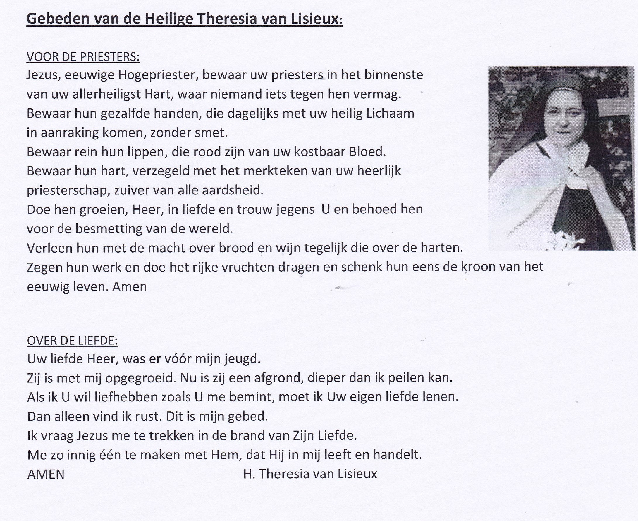 Een reactie op “Gebeden van de H. Theresia van Lisieux”
