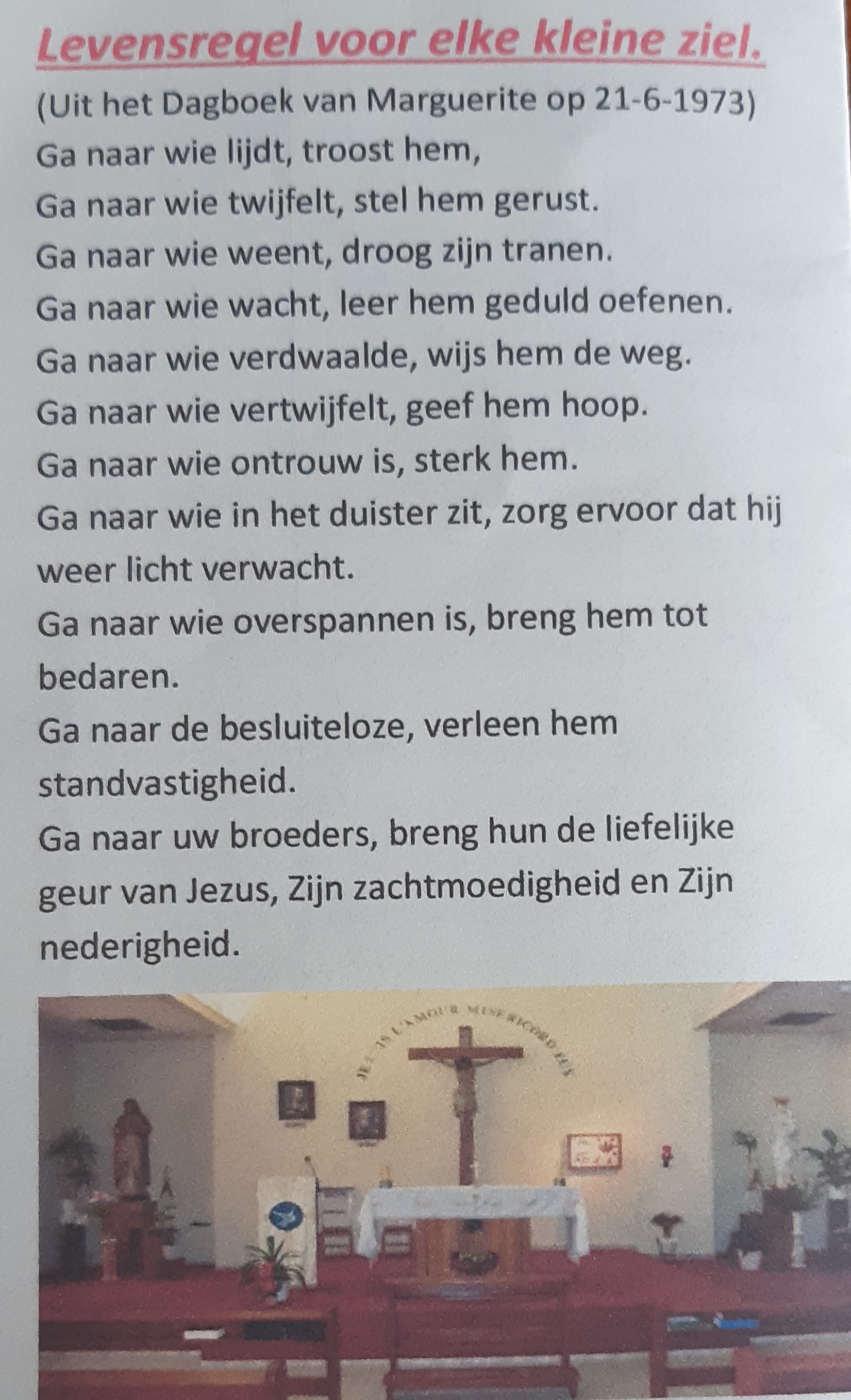 Ga naar uw broeders, breng hun de liefelijke geur van Jezus, Zijn zachtmoedigheid en Zijn nederigheid
